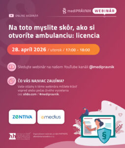 Milí kolegovia, milé kolegyne, pozývame Vás na online právny webinár organizovaný advokátskou kanceláriou h&h PARTNERS. Vstup na webinár je bezplatný. Téma webinára Na toto myslite skôr, ako si otvoríte ambulanciu: